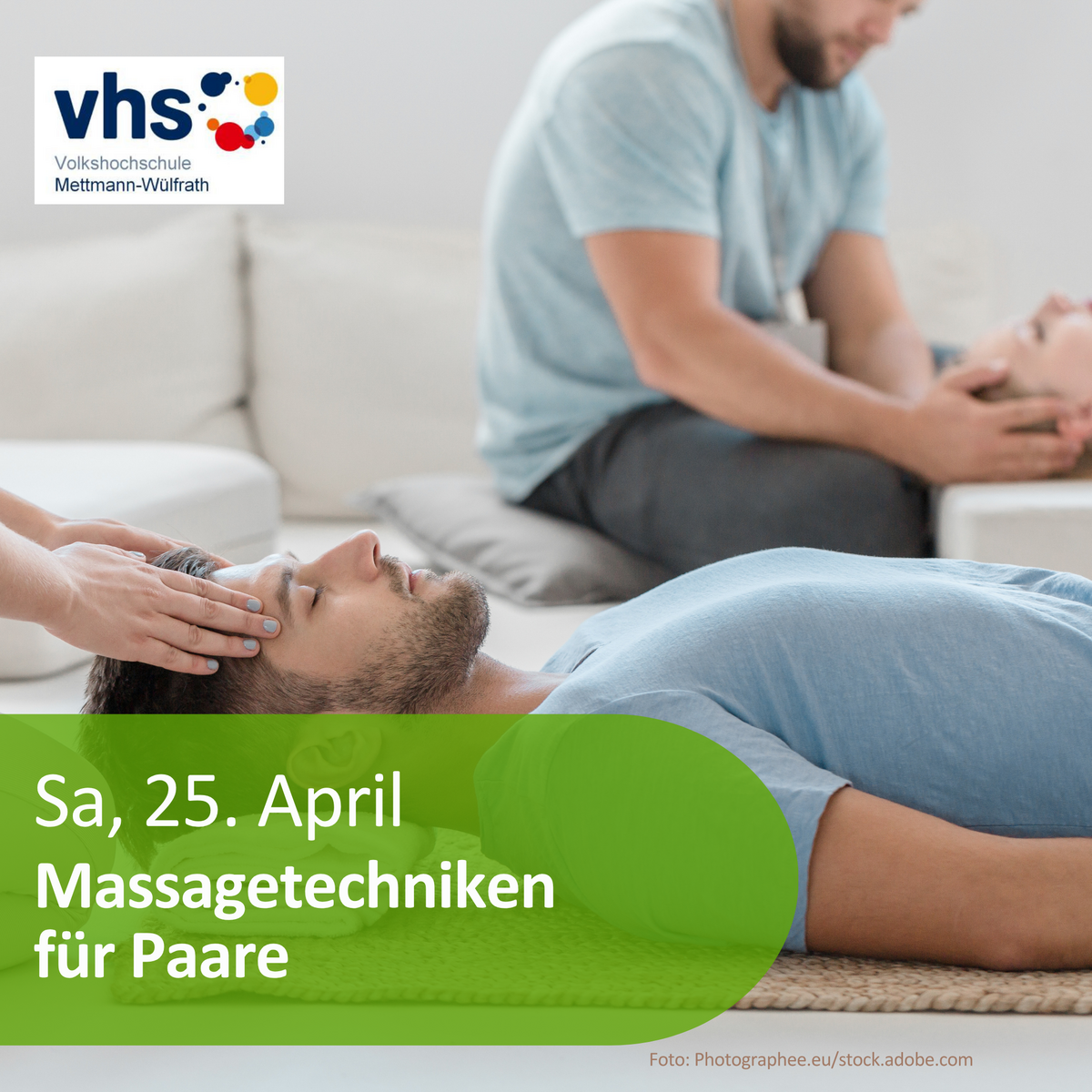 Dieser Kurs beginnt am Samstag, 25. April, und findet insgesamt 2x Sa in der Zeit von 09:30 - 13:30 Uhr im vhs-Haus, Schwarzbachstr. 28, in Mettmann statt. Weitere Infos und Anmeldung:hier.